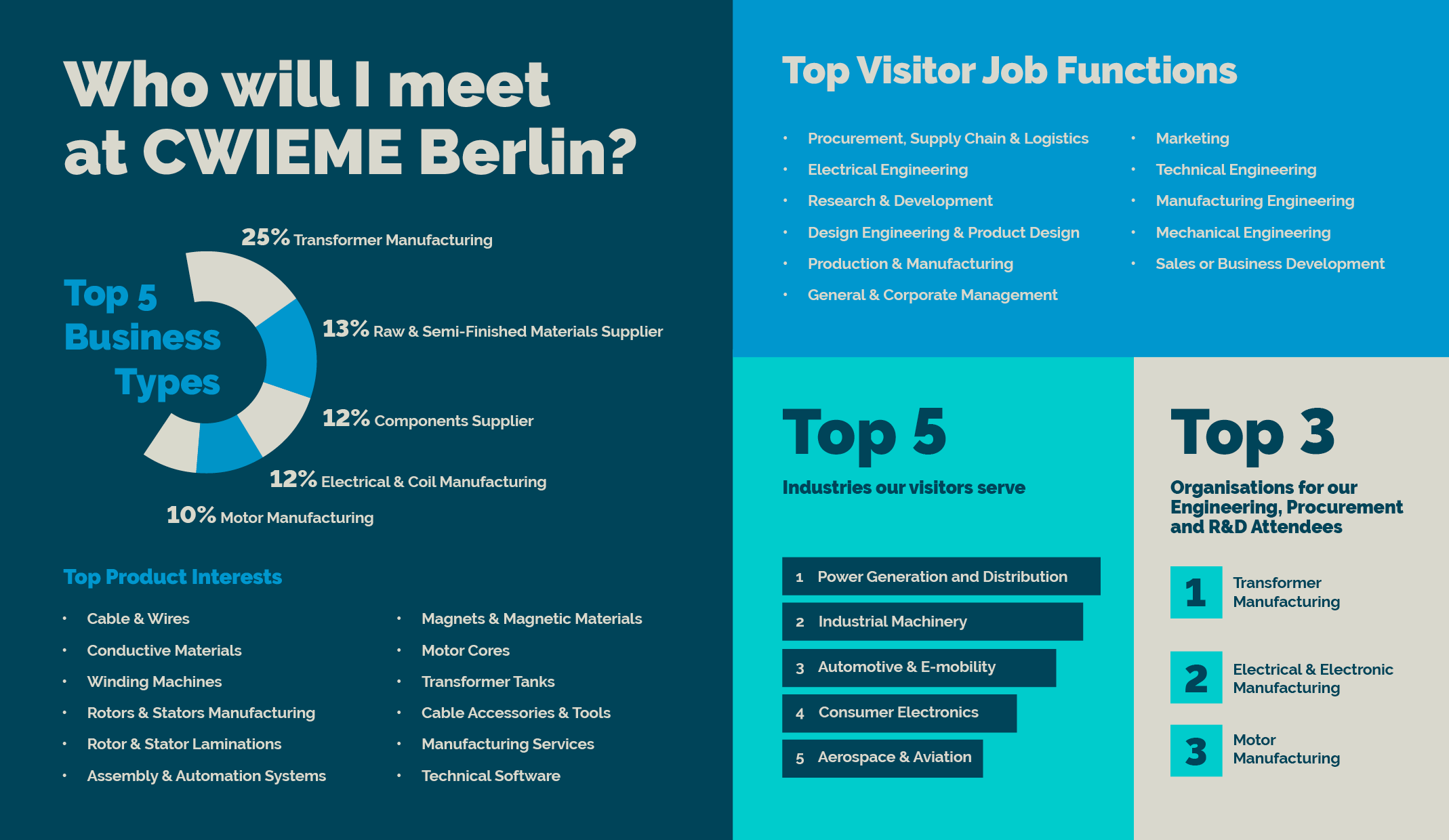CWIEME Berlin是全球最大的線圈、電機、變壓器及絕緣材料專業展覽會之一,自1995年創辦以來,至今已經成功舉辦28屆,成為電氣裝備、電機、變壓器制造領域的專業展覽會。展會聚焦電磁線圈、電機制造、絕緣材料及電動汽車技術,覆蓋從原材料、設備到成品的完整產業鏈,吸引全球制造商、工程師及采購商參與。作為歐洲電氣工業的風向標,CWIEME Berlin為參展企業提供拓展歐洲市場、對接國際買家的首選平臺。
